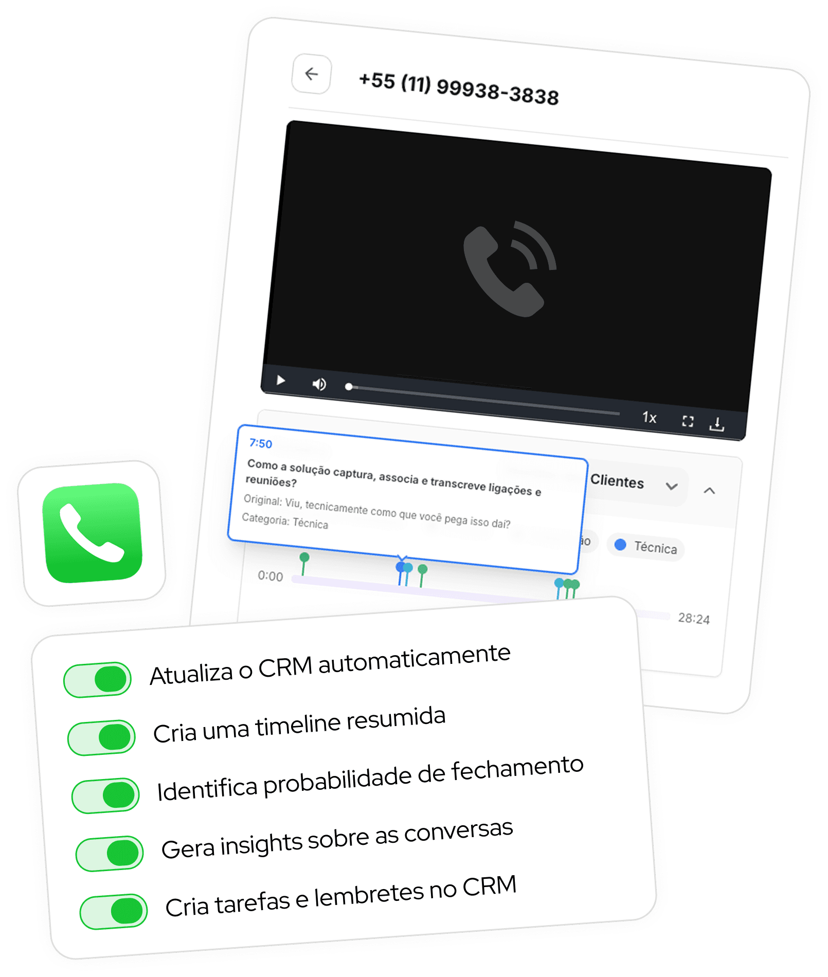 A nossa IA registra, organiza e transforma chamadas em dados estratégicos, integrados diretamente ao seu CRM.